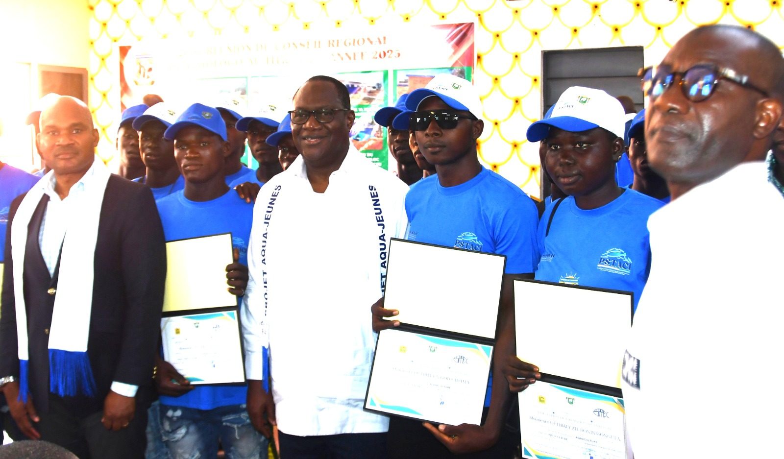 29 jeunes récipiendaires issus de trois (03) Sous-préfectures (Kafolo : 10 jeunes, Kaouara : 9 jeunes et de Toumoukoro : 10 jeunes) et formés en technique aquacole à Koubi pendant 10 semaines par le Programme Stratégique de Transformation de l’Aquaculture de Côte d’Ivoire (PSTACI) ont reçu leurs attestations de fin de formation en présence du Ministre d’Etat, Ministre de La Défense, M. TENE BRAHIMA OUATTARA, Président du Conseil Régional du TCHOLOGO. Au titre des invités de PSTACI à cette cérémonie de remise d’attestations, l’Unité de Coordination de Abidjan Legacy Program y figure par la personne de Monsieur SETTIE Henry Lopez Spécialiste projet pilote, représentant Monsieur Abou BAMBA, Coordonnateur dudit programme.
